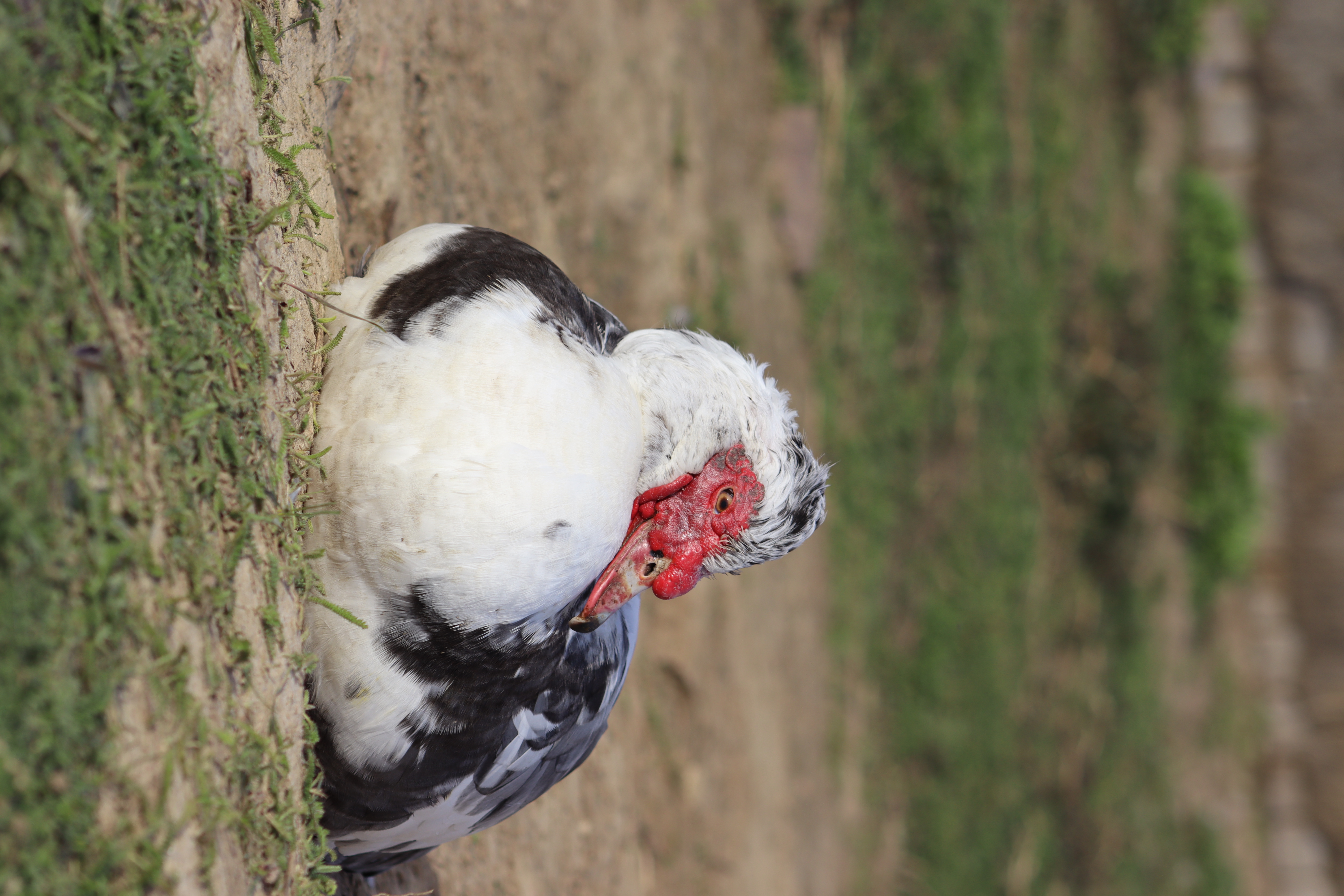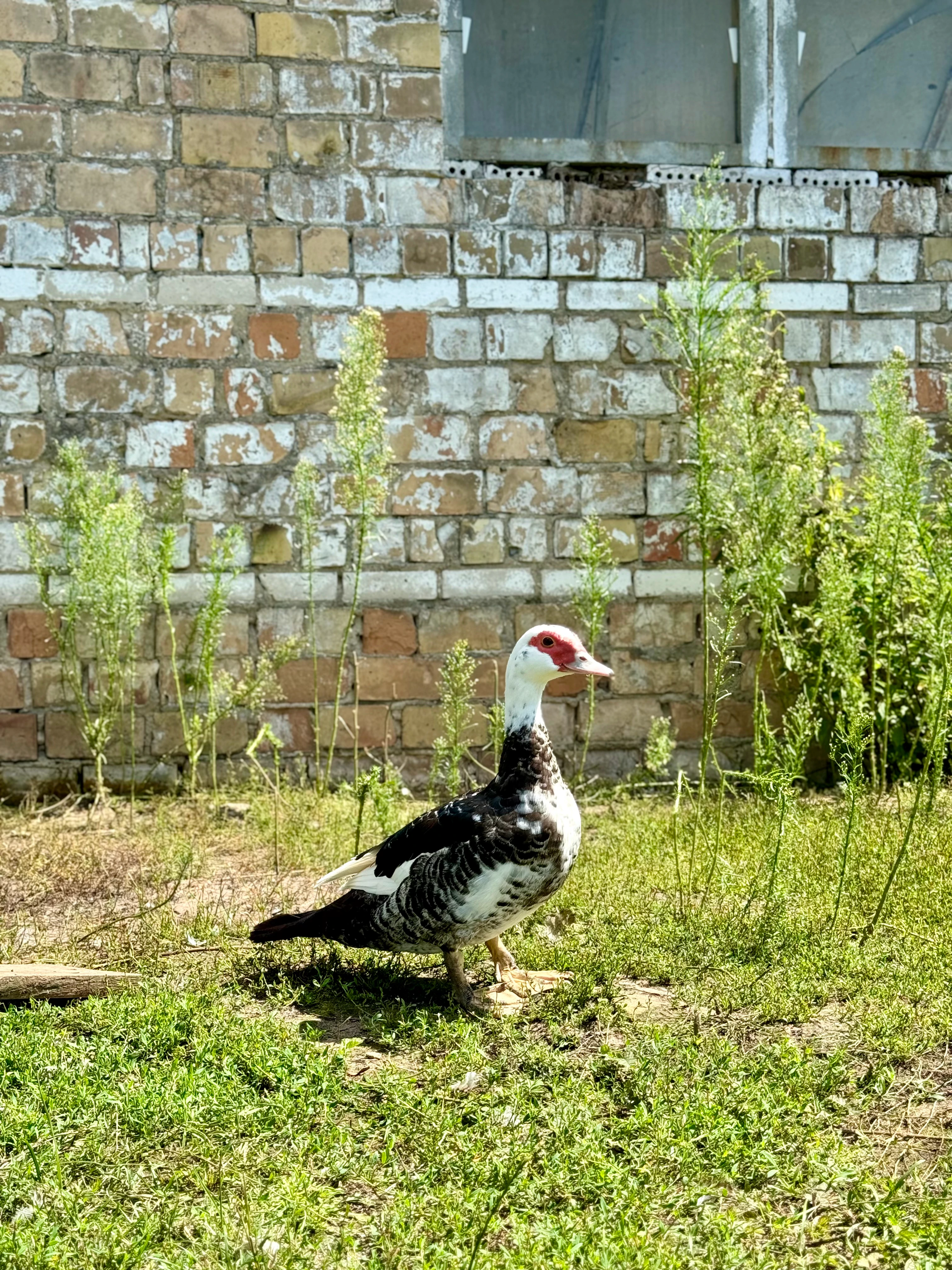 Er ist einer unserer ältesten Warzenenten Erpel. Sein genaues Alter und seine Vorgeschichte ist uns unbekannt. Das einzige, was wir wissen ist, dass er nicht mehr am leben wäre, wenn er nicht zu uns gekommen wäre. Trotz Lebenshof-Leben, ist es kein einfaches für ihn. Die Überzüchtung macht es ihm in seinem Alter schwer sich zu bewegen. Seine Brust vorne ist zu schwer um sein Gleichgewicht zu halten, sodass er beim Laufen nach vorne fällt. Morgens kommt er aus dem Stall und verweihlt dann in der Regel an einem Ort. Wasser und Futter bringen wir ihm, da er den "weiten" Weg zur Futterschale nicht immer schafft.