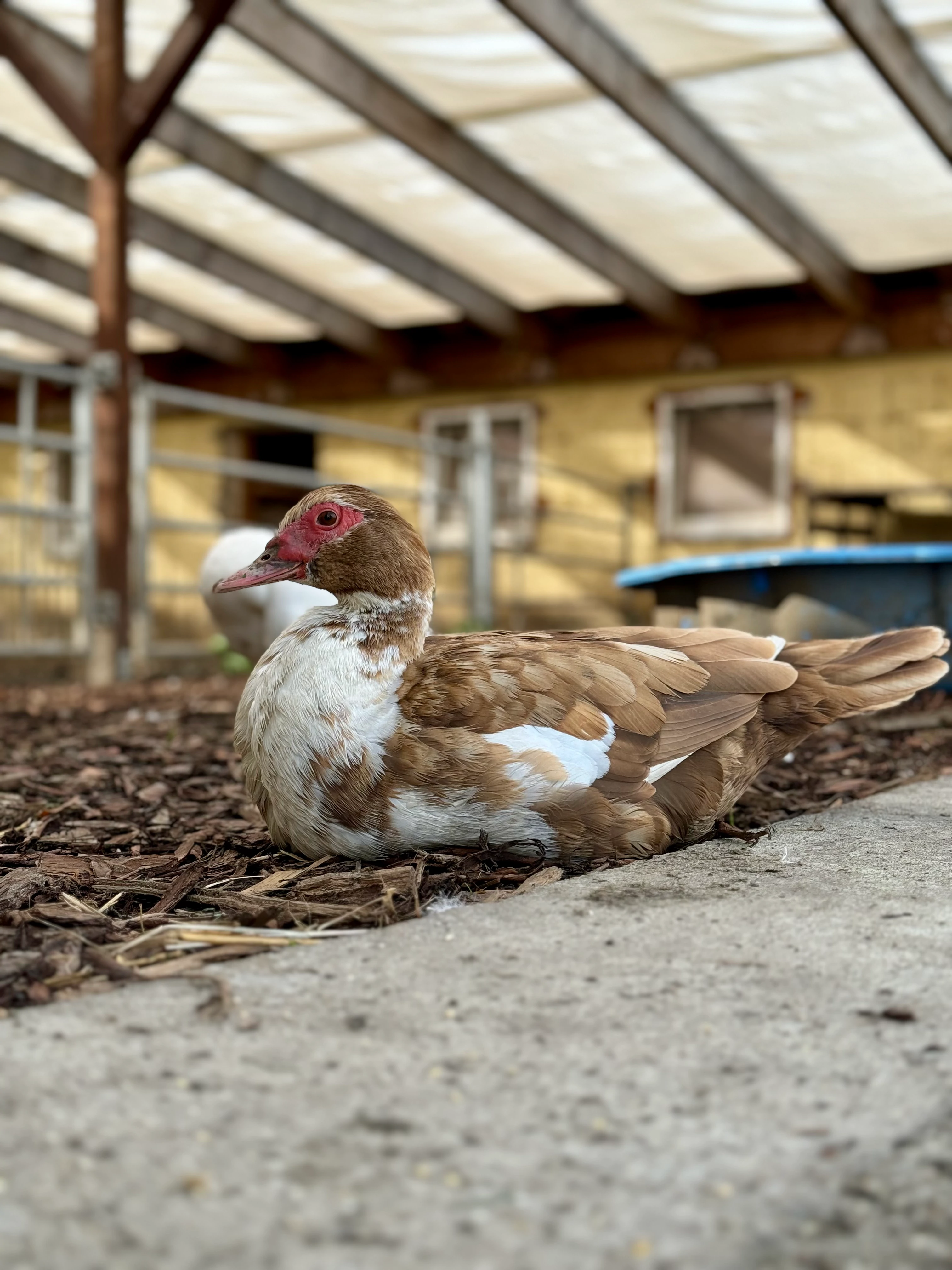 Bei uns leben 25 Enten. Die ersten Enten-Hofbewohner*innen kamen aus einer privaten Entenzucht bei uns aus dem Dorf. Im Herbst 2023 konnten wir 14 weiteren Warzenenten ein Zuhause schenken, die mithilfe eines Tierschutzvereines und dem Veterinäramt aus fürchterlichen Umständen gerettet werden konnten. Darunter war eine Mama Ente mit ihren 6 Entenküken, die wir mit aufwachsen sehen durften.