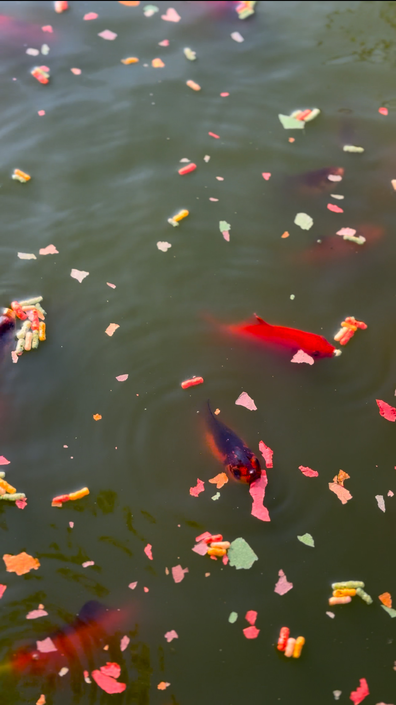 Die Fische leben bereits seit einiger Zeit bei uns auf dem Lebenshof. Sie kamen im Sommer 2023 zu uns und erobern seither den Schwimmteich. Wir konnten Sie damals aus einem ziemlich kleinem und ungepflegtem Wasserbecken retten. Sie wurden weder adäquat umsorgt, noch gefüttert. Hier warten sie bereits Morgens auf uns an der Wasseroberfläche und bekommen ihre Pellets in den Teich gestreut. Sie sind ganz wunderbare Lebewesen und freuen sich immer über eine kleine Runde Leckerlies.