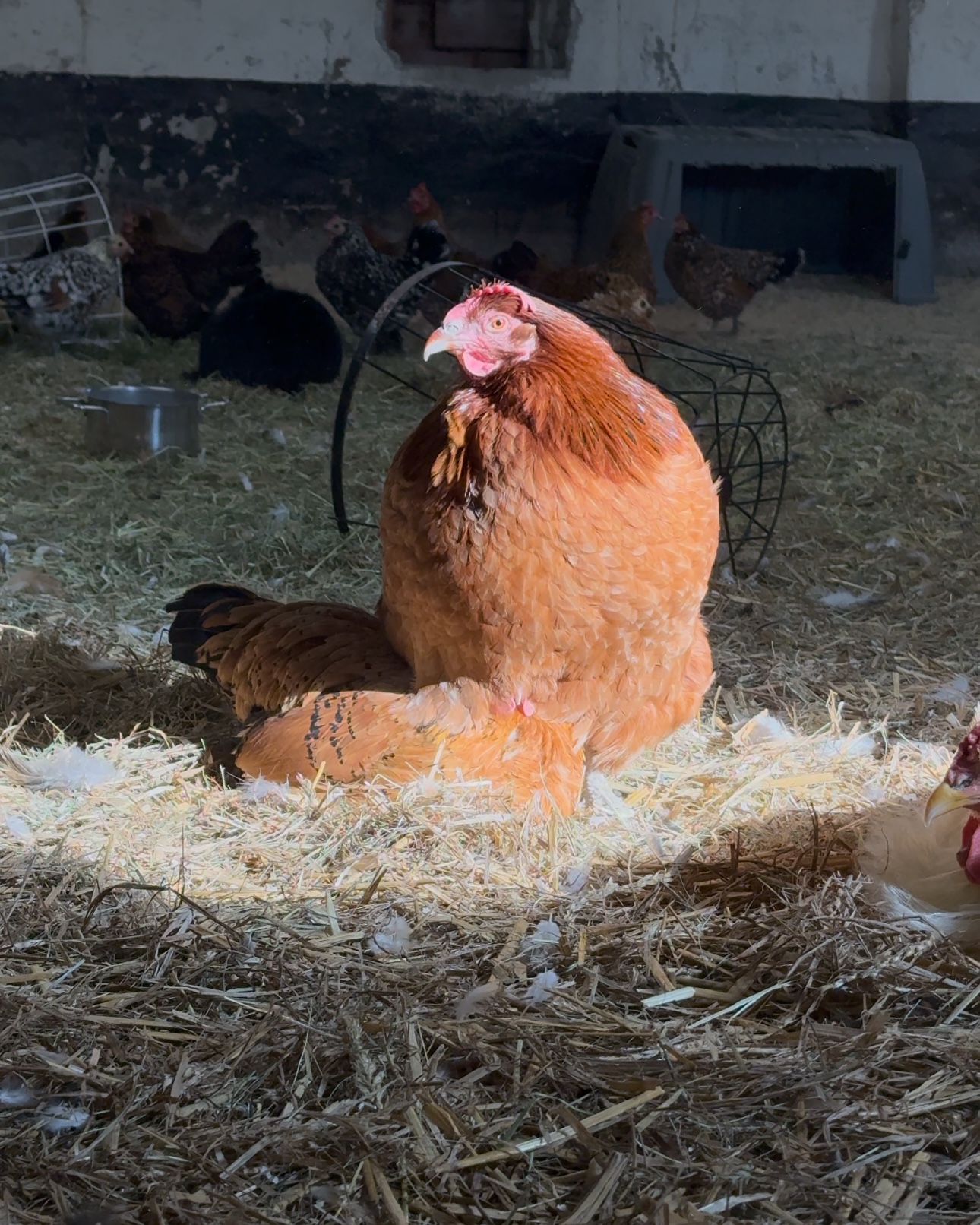 Wenn wir euch zwei unserer Hühner vorstellen müssten, die eine unzertrennliche Bindung haben, dann sind es definitiv Kokoschka und Frau Lohmann. Sie kommen beide aus unserem Dorf, wo wir sie aus einem Messi-Haushalt retten konnten. Kokoschka versteckt sich immer unter Frau Lohmann und so schlafen sie dann für Stunden. Wennn Frau Lohmann zum Essen geht, kommt Kokoschka mit. Abends auf der Stange würde Kokoschka am liebsten unter Frau Lohmann sitzen, das funktioniert aber dann mit der Balance nicht mehr so gut, dafür kuscheln sie die ganze Nacht aneinander. Die beiden sind ein Herz und eine Seele.
