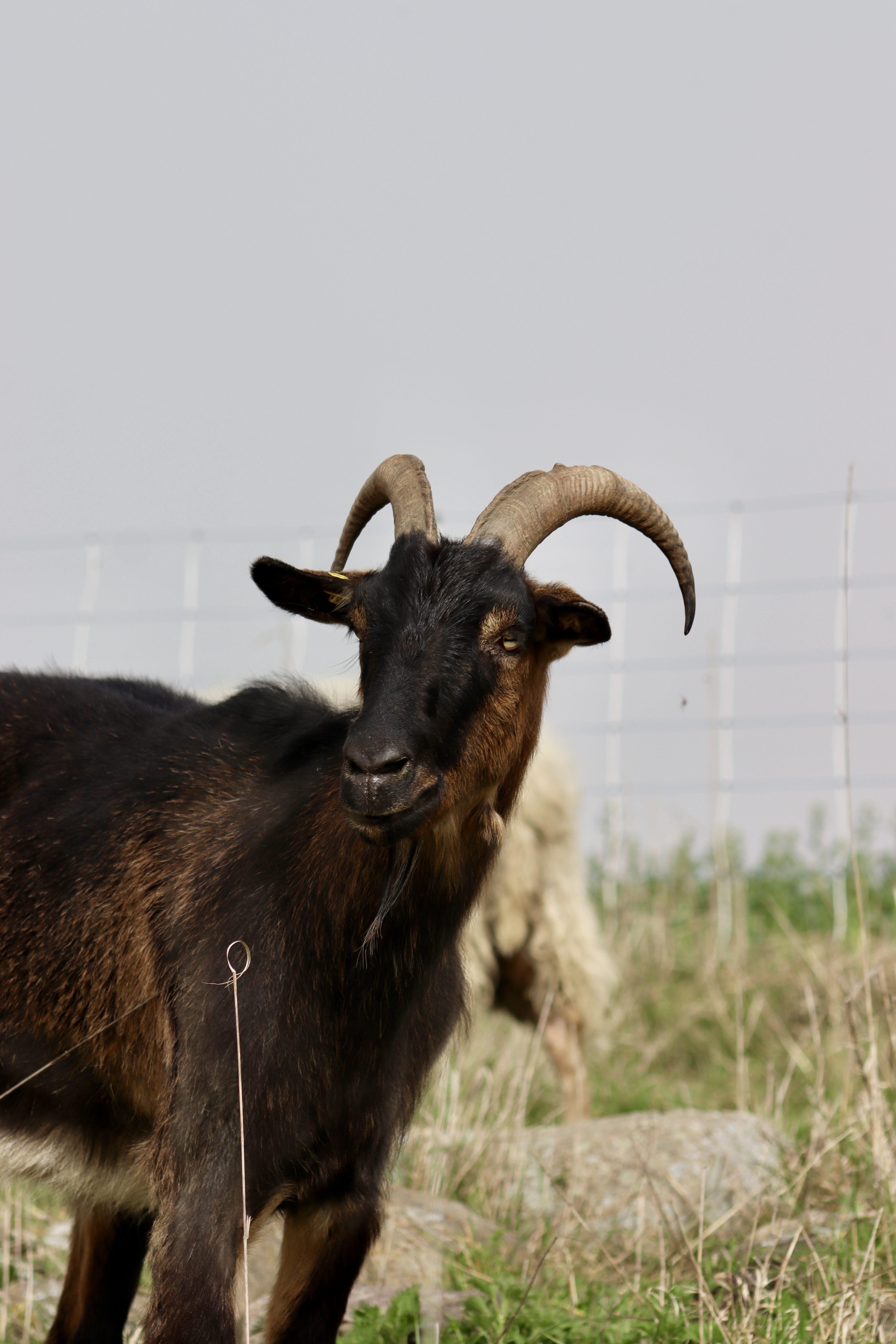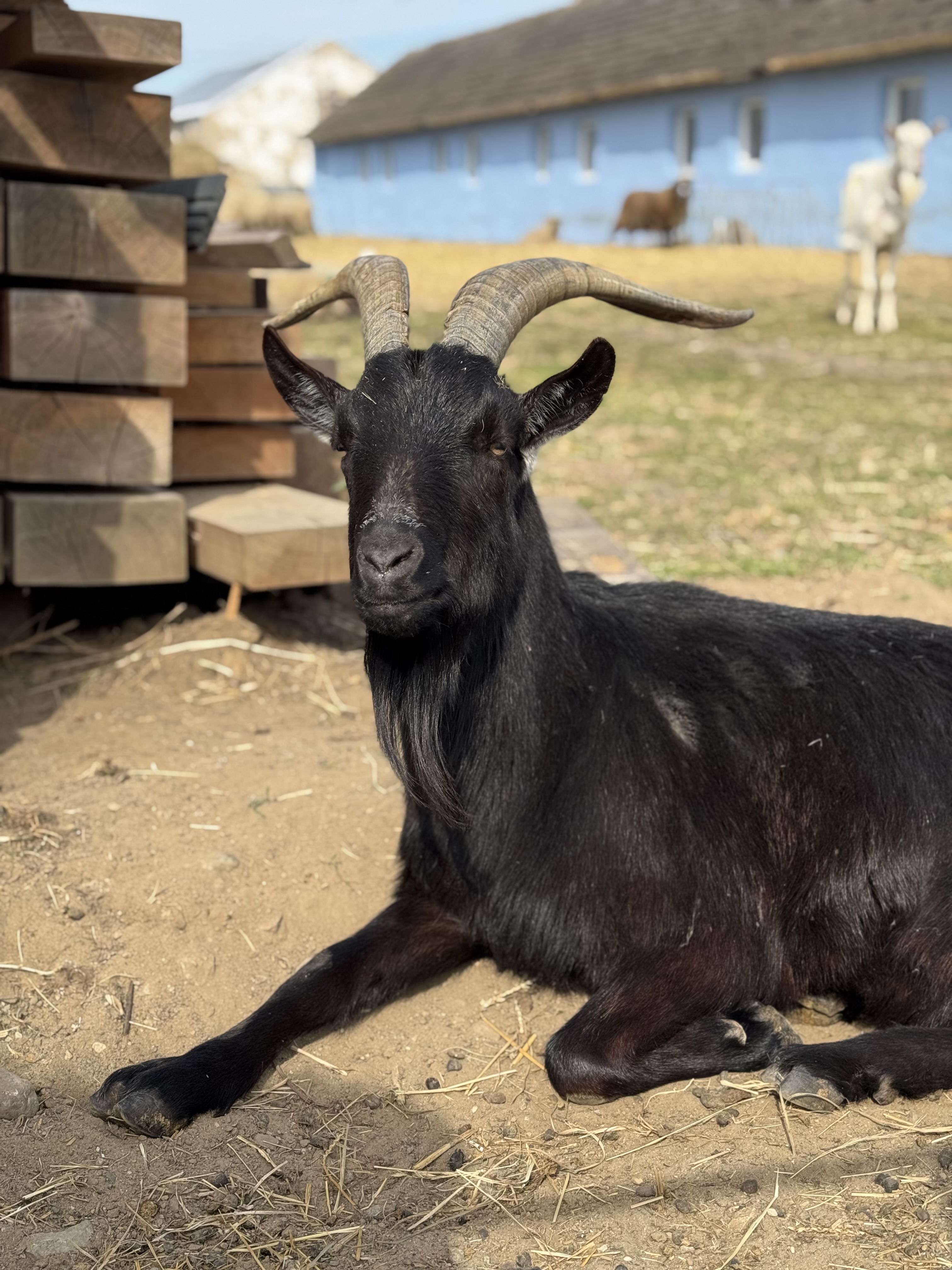 Kasimir konnten wir 2023 von einer schließenden Schäferei übernehmen. In die Schäferei fand er seinen Weg, da er aus schlechter Einzelhaltung kam. Er kam mit seinen vielen Ziegen Freunden zu uns und hält sich auch sehr gern in Ziegengesellschaft auf. Zu uns Menschen hält er einiges an Abstand, trotzdem erwischen wir in ganz oft neugierig zu uns schauen. Ein süßes Merkmal von Kasimir ist es, dass er gerne in den Wasser Anhänger springt, auf dem wir den großen Wassertank für die Herde haben.