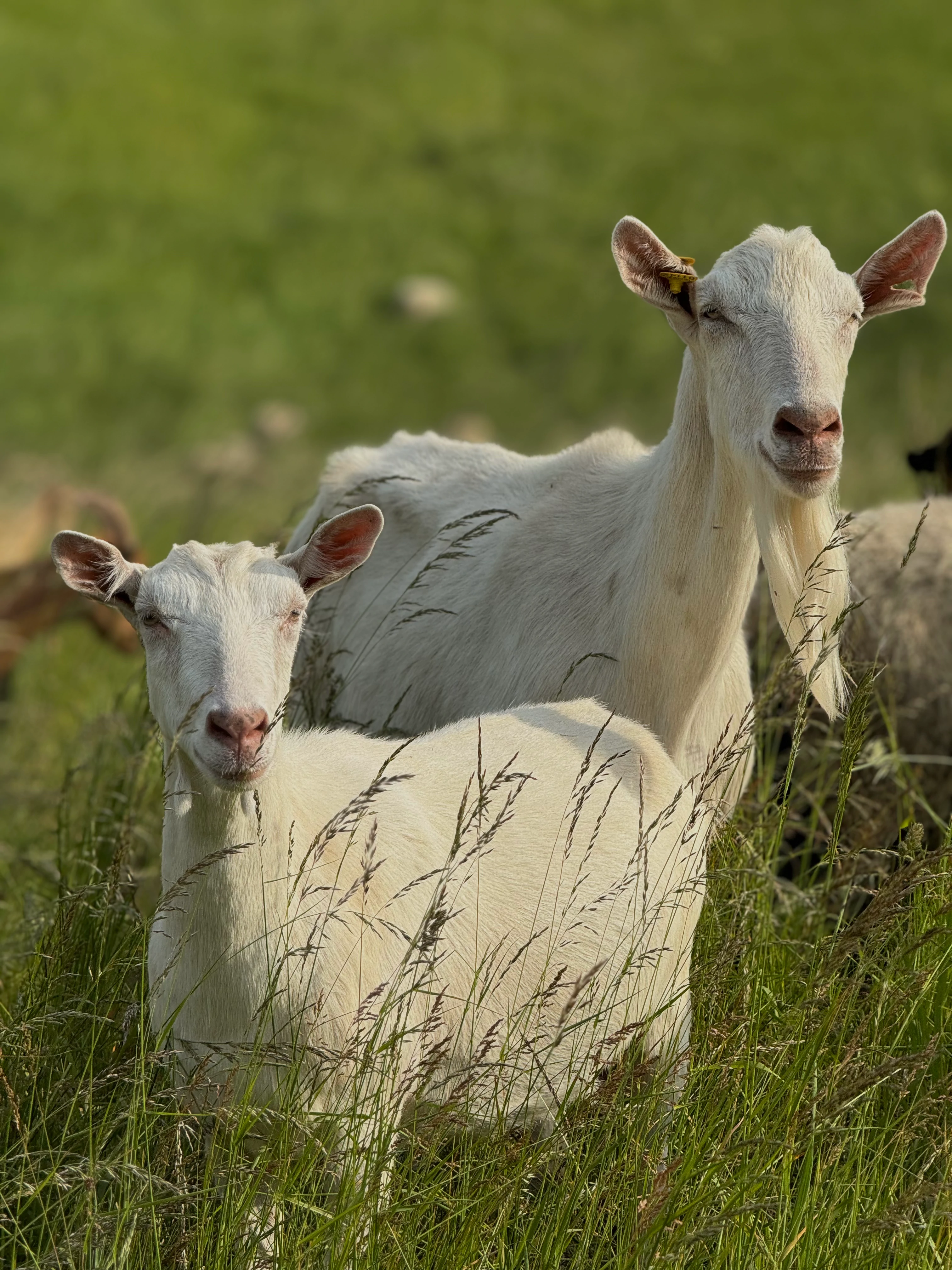 Die beiden Geschwister sind bei uns, da wir Gesellschaftsziegen für unsere chronischkranke Ziege Struppi suchten. Ziegen sprechen eine andere Sprache als Schafe, deshalb stand für uns fest, dass wir Struppi, der als einzige Ziege bei uns auf dem Hof lebte, Gesellschaft holen müssen. Tim und Kapitän Haddock kamen also mit jungen Jahren zu uns auf den Hof. Die drei sind unzertrennlich und die dicksten Freunde. Sie haben ganz viel Unsinn im Kopf, bauen oft Mist aber sind dabei sehr süß und verzückend. Sie sind neugierig gehen gerne mit uns spazieren und leben heute, zusammen mit Struppi in der großen Herde.