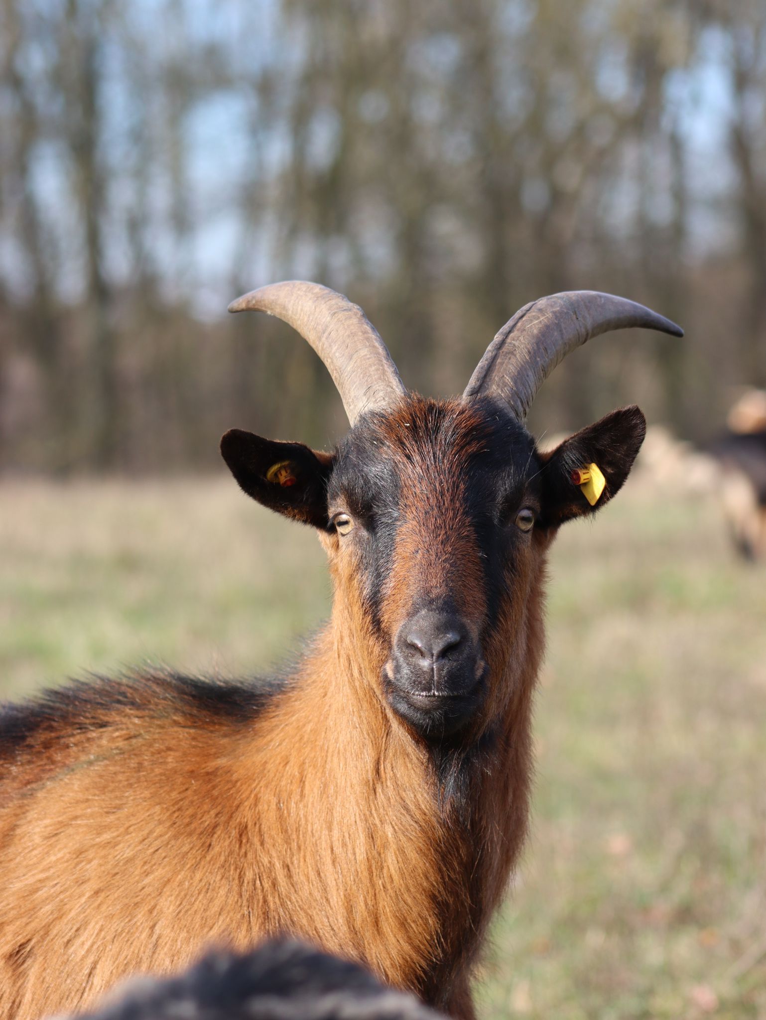 Lieschen wohnt bei uns in der großen Herde. Sie kam im Oktober 2023 zu uns, wo wir sie aus einem schließenden Schäfereibetrieb übernehmen konnten. Was Lieschen so besonders macht, ist ihr weißer Fleck am linken Vorderbein. Sobald wir der Herde eine Baumgruppe miteinzäunen, ist Lieschen eine der ersten, die in den Bäumen klettert und wenn es menschlichen Besuch gibt, traut sie sich meistens nah ran. Was wir auch erst vor kurzem entdeckt haben, ist eine kleine weiße Haarsträhne an ihrem Schwänzchen.